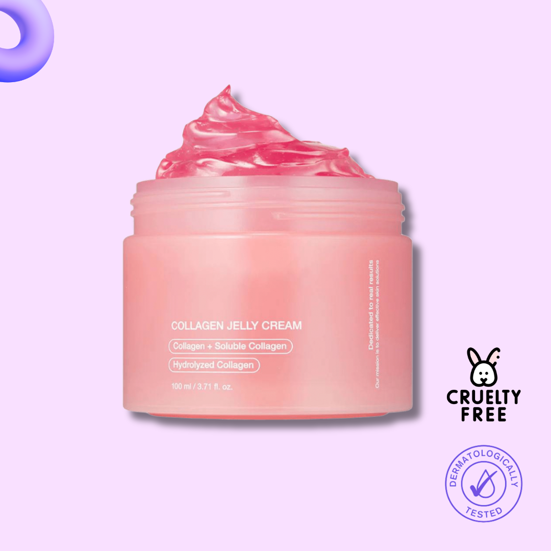 Een jelly cream met gevriesdroogde collageen en niacinamide voor een strakke huid en glanzende "glass skin".
